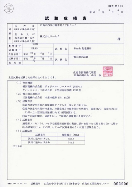 ■広島市工業技術センターで「Bhado分電盤&クルマ(旧名:Bhado配電盤用)の有効性を検証