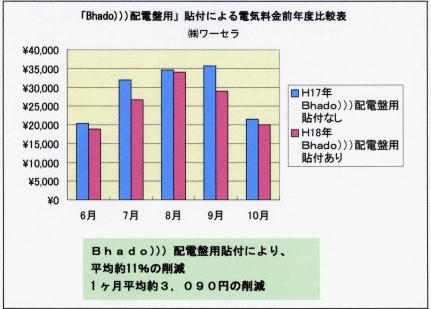 高調波の影響でテレビや蛍光灯のチラつき、ステレオの音質低下などがありますが、Bhado)))使用により、その様な現象が画期的に改善され節電につながります。
